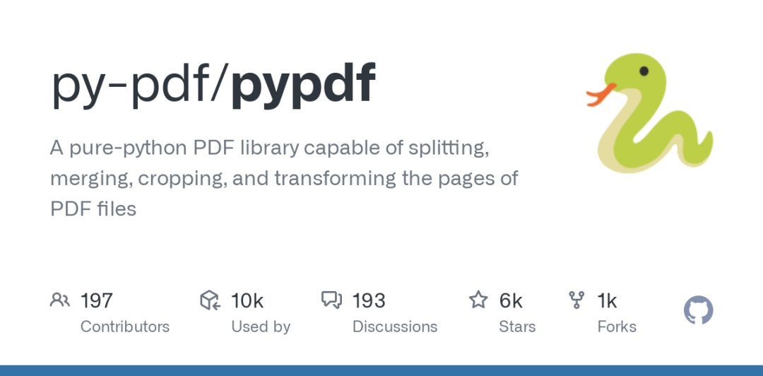 PyPDF2 是一个纯 Python 库,用于读取、写入和操作 PDF 文件。它是免费的、开源的,且不依赖于其他的外部库。PyPDF2 支持多种 PDF 操作,包括合并文档、拆分文档、裁剪页面、加密和解密文档、旋转页面等。它可以处理各种 PDF 格式的文件,即使是那些带有复杂布局和图像的文件。由于其简单的 API 和灵活性,PyPDF2 成为了处理 PDF 文件的流行选择,特别适合在自动化脚本和数据处理管道中使用。