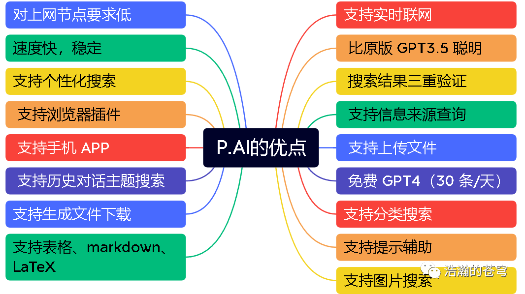 它的特点在于搜索引擎做的非常非常好。详细介绍《P.AI,平替 New Bing!实时联网+免费 GPT4》