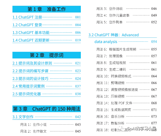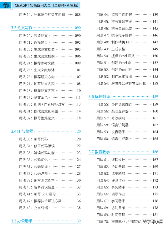 在本书》中,我们精心挑选150种案例,涵盖了论文撰写、PPT制作、数据分析、各语种翻译、短视频制作、AI绘画、公文写作等150类场景应用。这些案例既实用又具有代表性,帮助你全面了解ChatGPT在不同领域的应用。