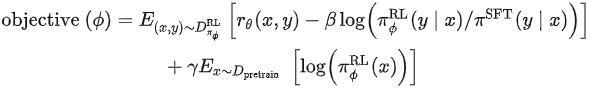 - 只用 PPO 模型进行训练的话,会导致模型在通用 NLP 任务上性能的大幅下降,OpenAI 研究者的解决方案是在训练目标中加入了通用的语言模型目标
