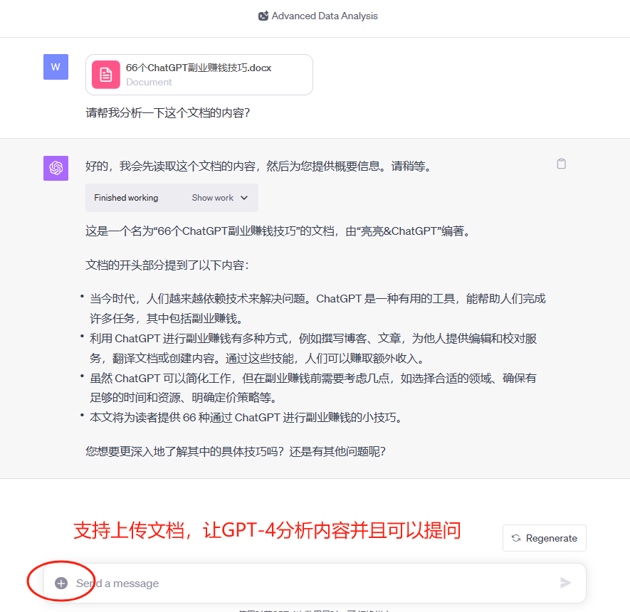 下面我给大家说一下,Plus账号的几大特别有用的功能,都是怎么使用的?1、可以使用官方的所有的插件功能,总共有上千款功能强大的插件,基本你想要的功能,使用插件后都能解决 !2、可以使用最近刚刚上线的DALL-E3 AI绘图功能,简单用中文描述你要画的内容,GPT4.0就能在3秒内创作出4幅精美的画,并且支持二次修改图片,比Midjourney绘画还牛逼 !3、支持用户上传多个文件的功能。允许用户最多上传10个文件到ChatGPT,并根据特定需求进行分析,例如提取核心数据、观点,或比较文件之间的差异等 。4、可以上传图片分析功能,我们上传图片然后根据图片的内容跟GPT4.0提问,可以看到它能非常准确的分析出你图片的内容 。