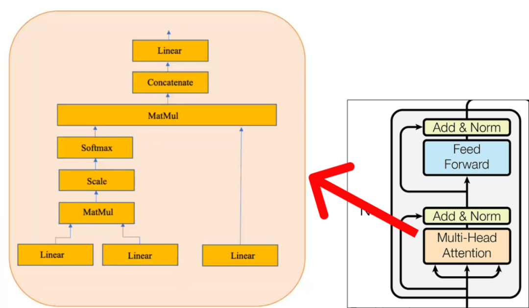 在编码器中,我们执行复杂的操作,涉及查询(query),键(key)和值(value)的矩阵。这些操作对于转换输入数据和提取有意义的表示形式至关重要。在多头注意力(multi-head attention)机制内部,单个注意层由几个关键组件组成。这些组件包括:请注意,黄色框代表单头注意力机制。让它成为多头注意力机制的是多个黄色盒子的叠加。出于示例的考虑,我们将仅考虑一个单头注意力机制,如上图所示。Step 1 (Performing Single Head Attention)