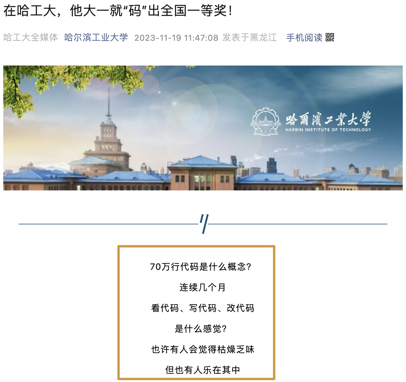 0、哈工大人工智能专业大一学生写了 70 万行代码? 哈尔滨工业大学近日在其公众号发表的一篇文章引起了不小争议。该文章介绍称,哈工大计算学部人工智能专业的一名 2022 级学生在中国机器人及人工智能大赛总决赛上获得了机器人应用赛(自动驾驶仿真)一等奖。
