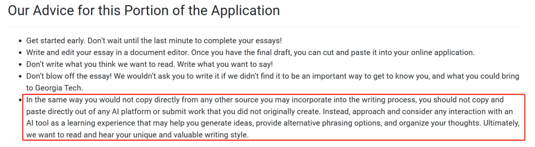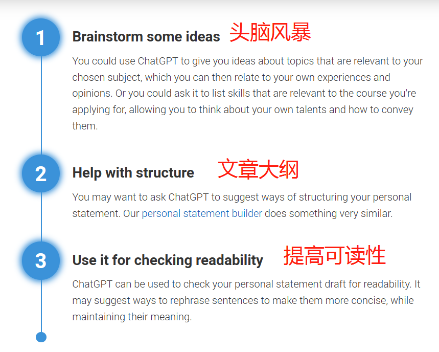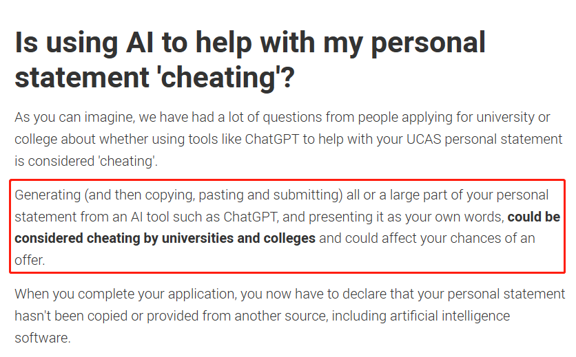 英国大学申请系统UCAS也对是否可以在个人陈述中使用AI和ChatGPT给出了指导意见。