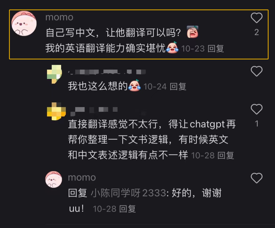 。如果同学们的中文申请文书本就逻辑混乱,那么用AI进行翻译,最后得到的英文文本肯定也会有语法错误和逻辑不通的地方。