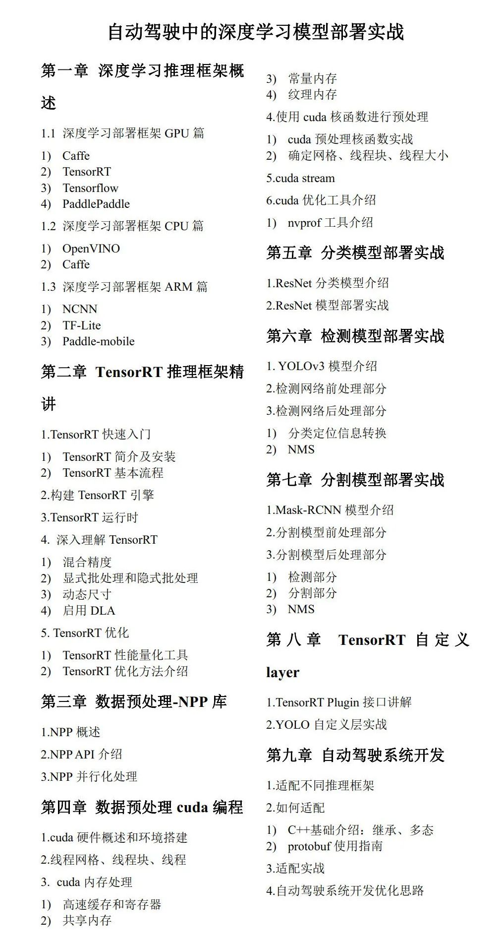 为此我们推出了国内首个面向工业级实战类教程:《自动驾驶中的深度学习模型部署实战》,一线大厂算法工程师带队,10年工程化经验,帮助大家快速进步,少走弯路。