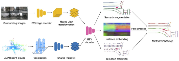 其次是定位领域,自动驾驶通常需要厘米级的定位精度,这就使得传统高精地图在许多场景下不十分可靠。近年来一些方法使用在线地图学习,基于车载传感器观测,动态地构建高清地图,是一种比传统的预标注高清地图更可扩展的方式,为自动驾驶车辆提供语义和几何先验。