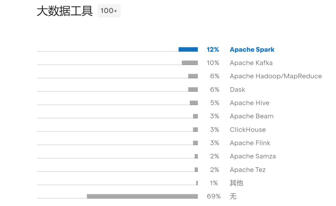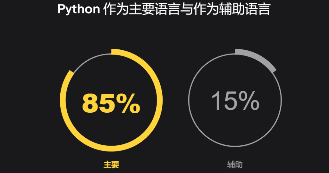 而使用 Python 作为主要语言的受访者大多将其用于 Web 开发 (23%)。作为辅助语言,Python 最常用于数据分析 (16%) 和 DevOps (14%),Web 开发排在第三位 (13%)。
