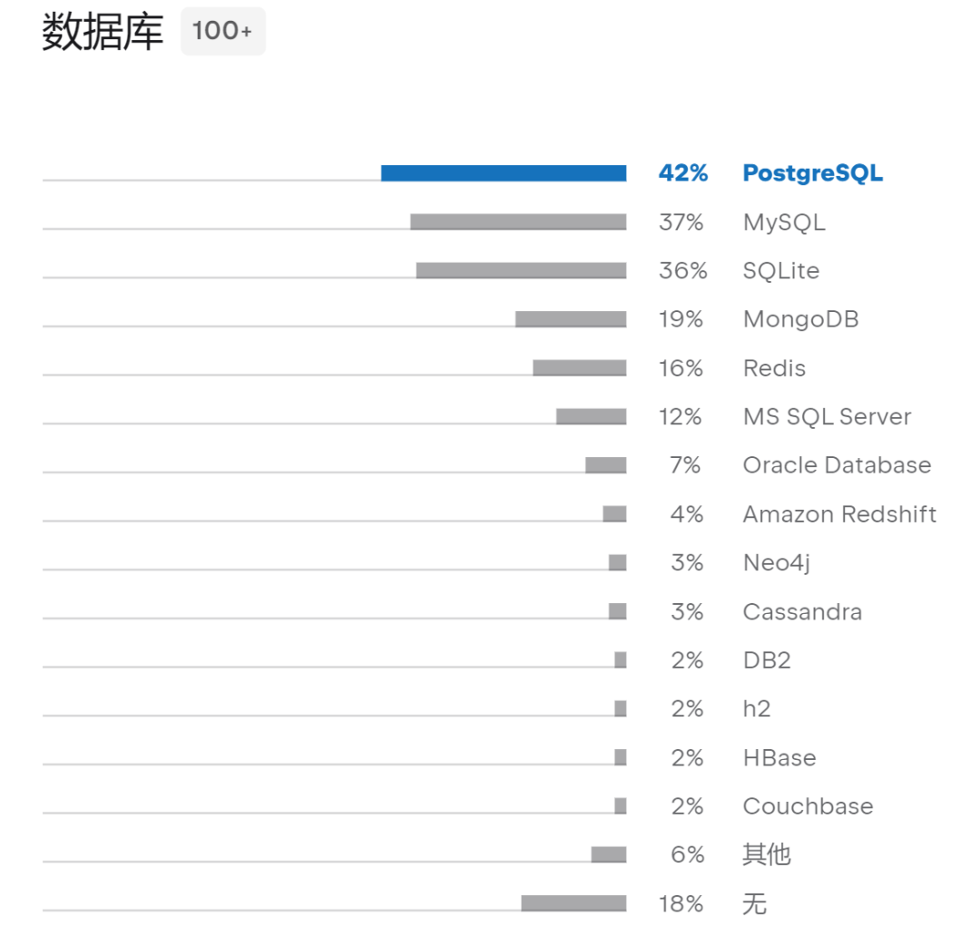 MS SQL Server 和 Oracle Database 在数据科学家中的受欢迎程度是 Web 开发者的两倍,而大多数其他数据库在 Web 开发者中的采用率要高得多。