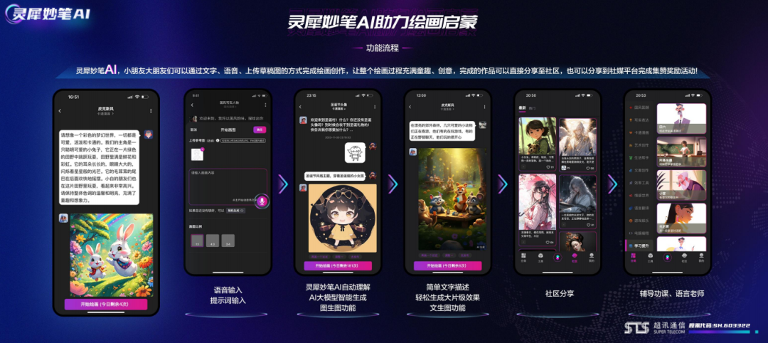 小朋友大朋友们可以通过文字、语音、上传草稿图等方式完成绘画创作,让整个绘画过程充满童趣、创意,完成的作品可以直接分享至社区,也可以分享到社媒平台完成集赞奖励活动!
