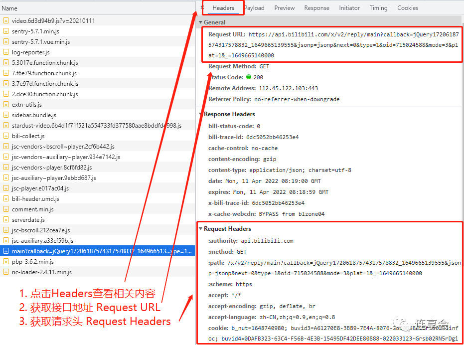 url = 'https://api.bilibili.com/x/v2/reply/main' # 接口网址的主要结构