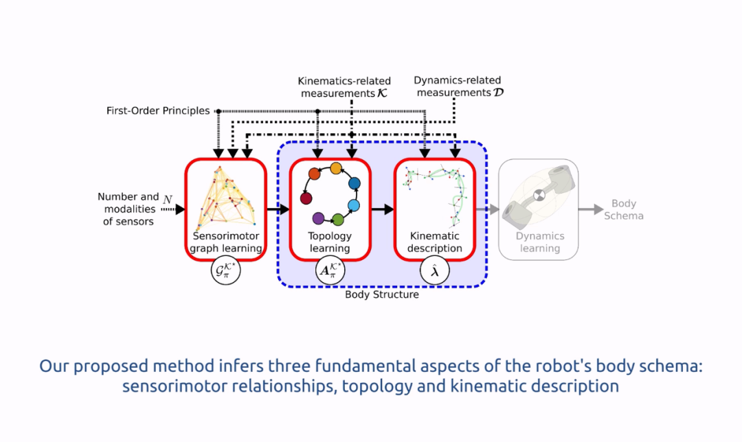 搭载传感器的机器人可以在没有预先学习数据的情况下,通过随机运动的方式来建立起自己的数据库模型,通过模型的优化,让机器人了解其自身的零部件如何工作。