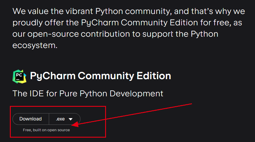 社区版本是个人免费学习使用的 对初学者来说,其实两个版本没什么区别,因为大家的技术太辣鸡了,用不上专业的版本。下载了适用于Windows操作系统的exe文件后,基本上都是正常安装即可,就不赘述,如果连窗口格式的软件都不会安装,就放弃学编程吧,浪费时间。。。。