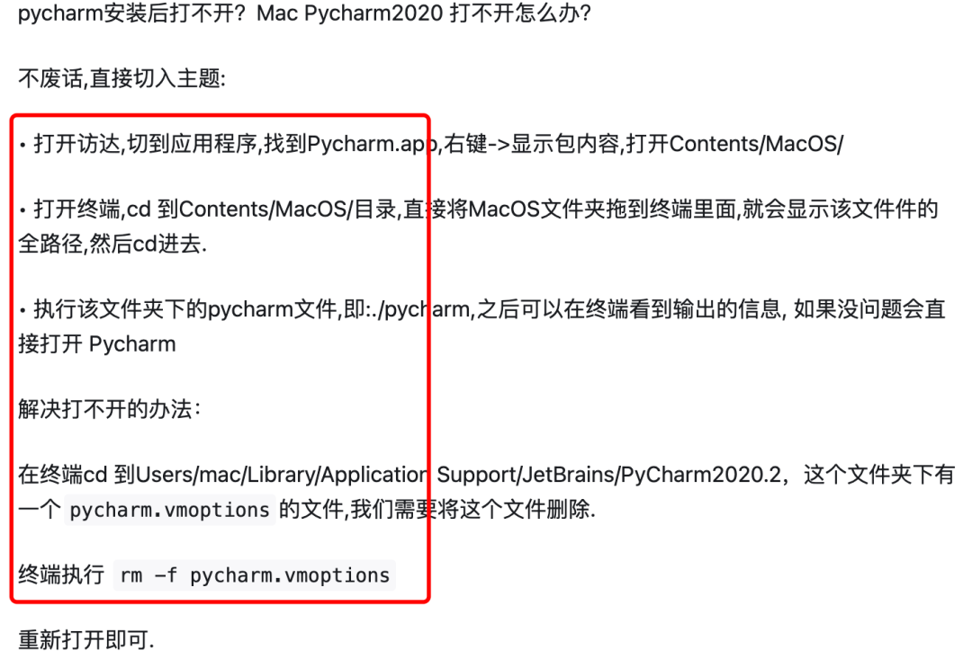值得注意的是,如果是MacOS电脑,确实是安装它会有一点点困难其实也可以靠搜索解决啦,我这里记录一下我自己看到的解决方案。这里我遇到的是:你无法打开应用程序“PyCharm CE”,因为这台Mac不支持此应用程序。
