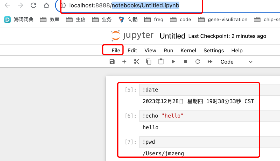 这个notebook就是交互式的可以练习你的Python编程哦,而且它里面的输入代码如果前面加上了感叹号而且是一个合法的系统命令(一般来说是Linux系统的各种命令啦),也是可以有运行结果,如下所示: