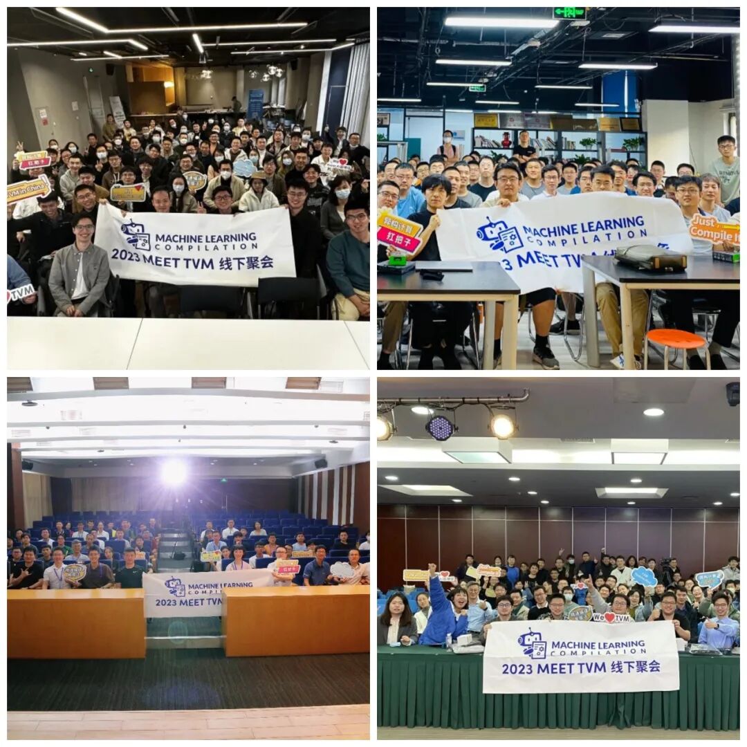 2023 年 Q1-Q4,我们在上海、北京、深圳成功举办了 4 场线下 meetup,很开心能够在不同的城市汇聚起关注 AI 编译器的工程师,为大家提供一个学习交流的平台。2024 年,我们将继续开拓 TVM 城市地图,诚挚邀请各位企业及社区伙伴们以各种形式参与共创,无论是推荐讲师还是提供场地、茶歇,我们都非常欢迎的。