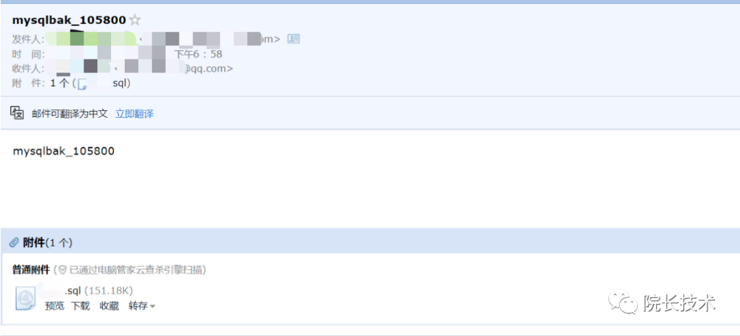 mysqldump: [Warning ] Using a password on the command line interface can be insecure. 105801 105802 从日志可以看到,邮件已经发送成功了!我们来去邮箱看一下,发现也已经成功了,至此我们的实验完美完成!