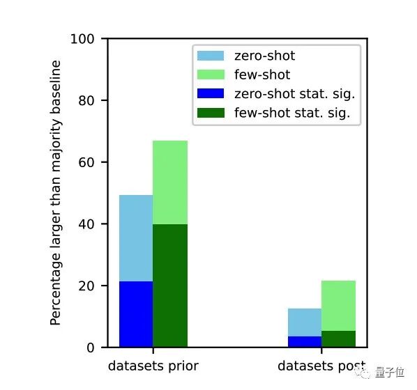 - 在实验中,对于没有任务污染可能性的分类任务,大模型很少在零样本和少样本设置中表现出相对于大多数基线具有统计学意义的显著改进。