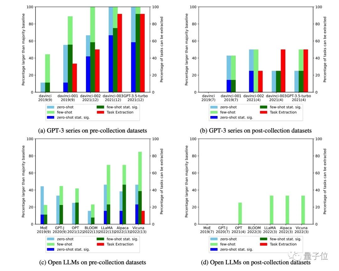 论文重点研究了“任务污染”问题,也就是大模型在训练时期就见识过很多任务示例,给人一种AI拥有零样本或少样本能力的错误印象。