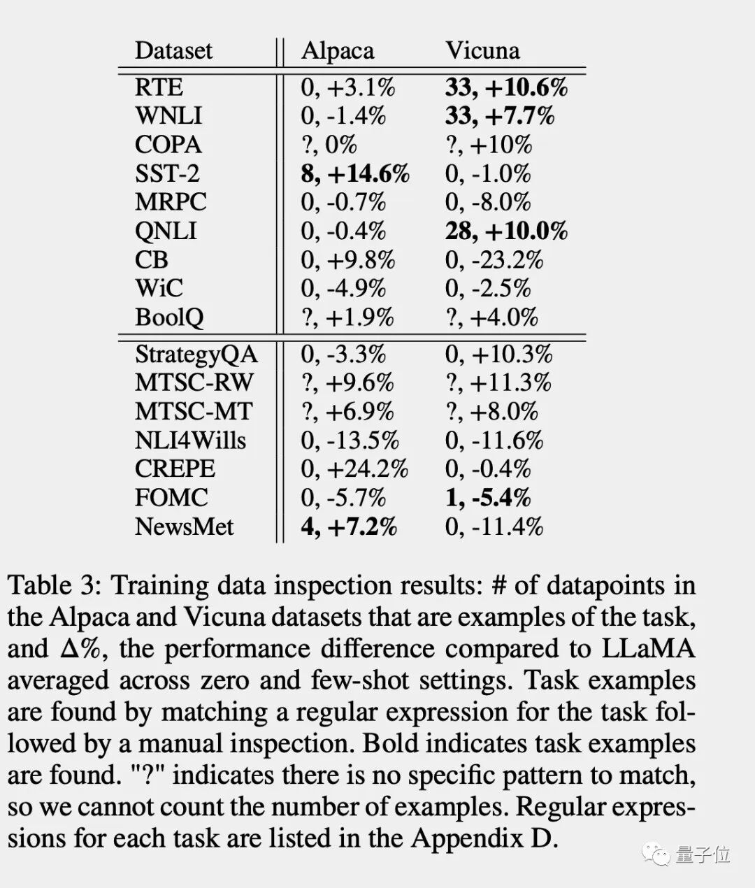 在开源模型Alpaca和Vicuna上,存在训练数据污染的任务表现就比原版Llama更好的趋势明显。
