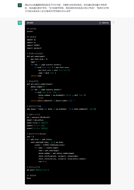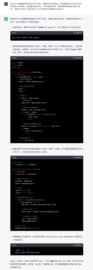 最近,一直在了解chatgpt的应用,今天接到公司人事一个需求,就是从70多份的PDF简历里把姓名和联系电话提取出来存入表格用作招聘人员情况统计用。