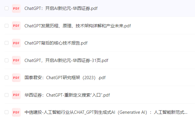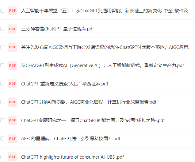 整理了一份近期有关于ChatGPT的一些资料打包成一份资料合集,里面包含了各大机构对于ChatGPT的观点和态度,包括但不限于体验报告、热点回顾、海内外布局梳理、技术讨论、行业应用、发展前景、投资机会等等。希望对大家有所帮助。