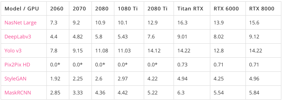 截至2020年2月,以下GPU可以训练所有SOTA语言和图像模型:RTX 8000:48 GB VRAM
