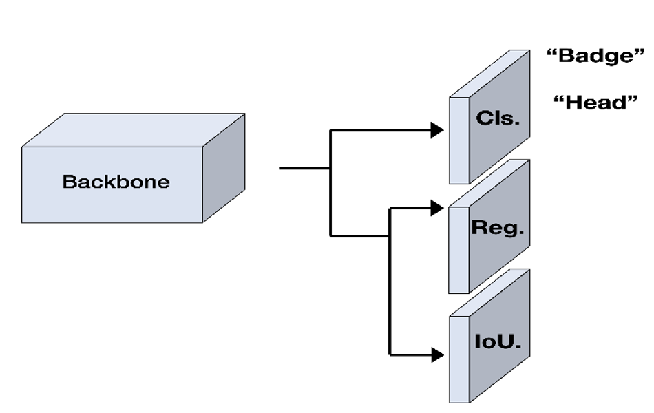 之前,我们提到检测框尺寸出现长尾分布的挑战,在这里我们使用业界常用的YOLOX作为我们的检测模型。其中的anchor-free设计能很好的缓解这个挑战。我们将工牌"badge"和人头"head"一起作为检测的分类。我们选择了yolox-s的模型尺寸作为基础模型,它的推理速度较快,能够较好的满足赛题要求。