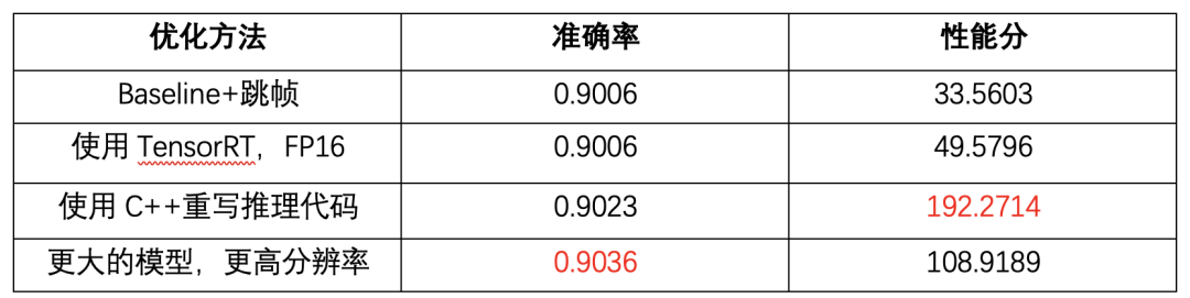 了解到比赛还提供了C++的部署方案,且我们的性能仍未达到100FPS的上限,我们团队决定用C++重写原来的Python推理代码。最终性能分几乎上涨到原来的4倍,在所有参赛选手中名列第一。