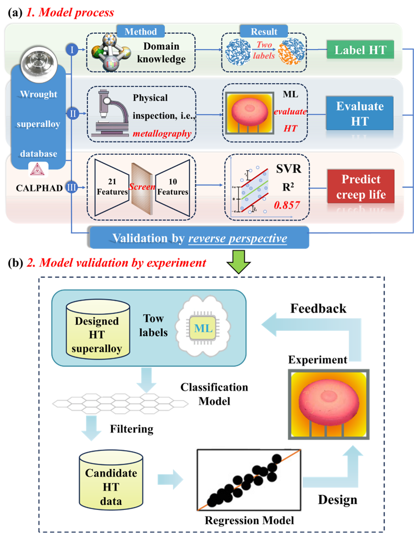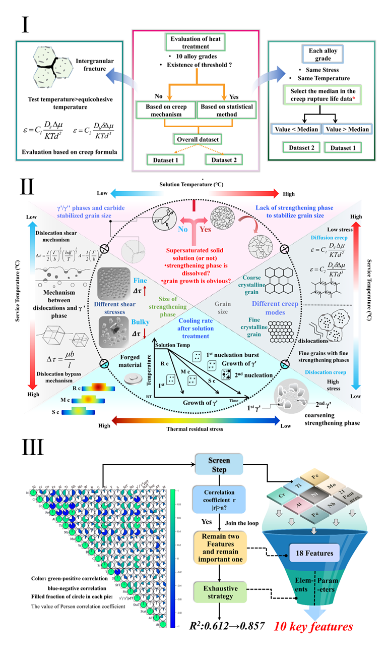 3)通过筛选关键特征增强的回归模型预测蠕变寿命(准确率达90%以上);