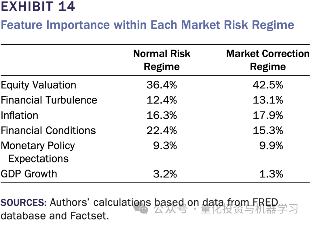 - 市场风险信号(金融动荡)和金融条件成为跨不同市场风险体制确定因子表现的关键特征。这一发现强调了在开发因子预测模型时纳入这些特征的价值,以更好地应对不同的市场条件。
