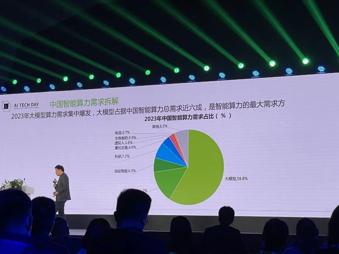成立不满17个月、团队超过50人、背靠几度转型失败的“彩票大王”,英博数科的手里似乎并没有特别亮眼的王牌。可就是这样一家小公司,在激烈的云服务与算力租赁竞争中,接连拿到头部大模型创企的订单,独享了“泼天的富贵”。鸿博股份副总裁、英博数科CEO周韡韡给出的答案很简单:有算力。2023年,英博数科先是在2月交付了首个DGX A800算力集群,6月H800陆续到货,8月完成1000P由A&H系列智算服务器组成的AI算力集群部署调优,10月累计交付3000P AI算力,能向客户交付相当规模的GPU算力资源。据艾瑞咨询统计,大模型占据2023年中国智能算力总需求的58.8%,是最大需求方。