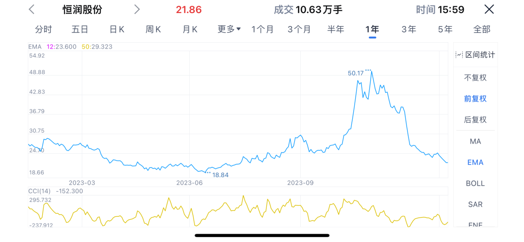 ▲恒润股份近一年来的股价走势(图源:腾讯自选股)