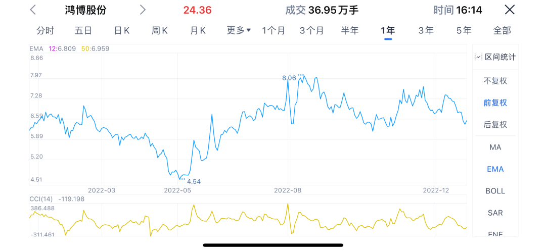 ▲鸿博股份2022年的股价变化(图源:腾讯自选股)