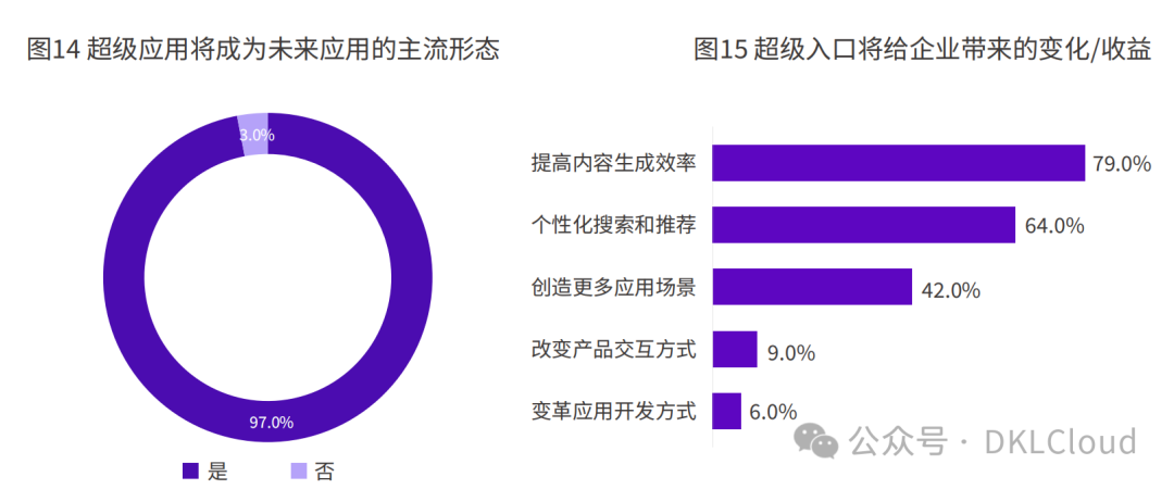 AIGC带来的应用形态变革,也有利于激发当前的软件产业活力,促进软件生态繁荣,推动应用与垂类业务实现更深的融合。IDC的调研显示:绝大多数软件企业都认可超级入口将成为未来的主流应用形态。