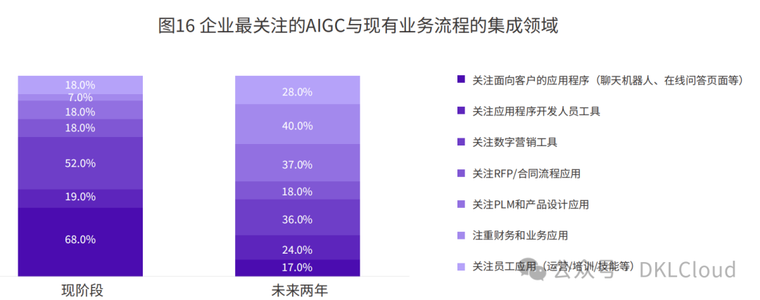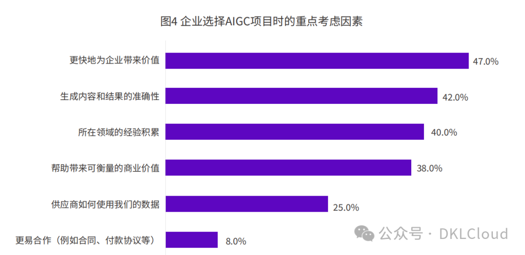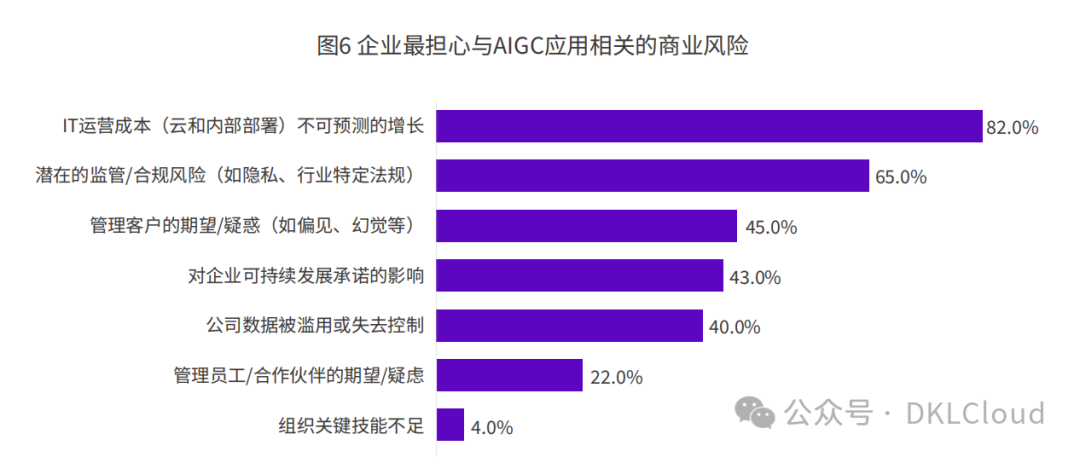 普遍担心AIGC带来的运营成本不可预测、隐私/合规风险以及客户预期管理等有关的不可控局面。此外,相关的技术栈、工具软件、数据集、技能方面的缺失都可能限制企业对AIGC的投入热情。因此,大模型的安全可解释以及产品工具的易用性都非常重要,是坚定企业信心、加快企业场景落地的关键问题。
