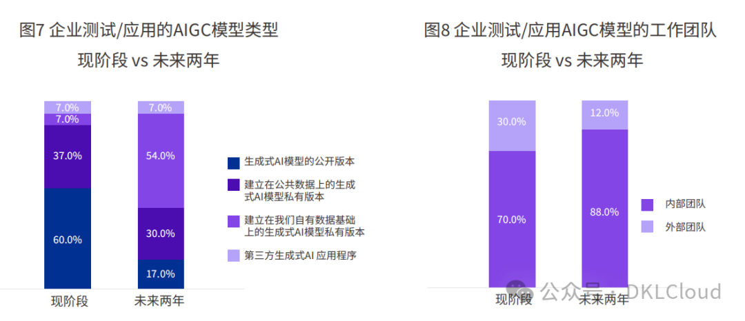 IDC的调研显示:目前有60%的企业使用大模型的公开版本,但这一比例在两年后会迅速降至17%,更多企业会将AI应用建立在私有、专属模型基础上;同时,高达88%的企业选择通过内部团队开发相关应用。由此可见,行业专属大模型已经成为企业未来的热点目标,企业也要持续建设自己的人才队伍,修炼AIGC应用的“内功”。
