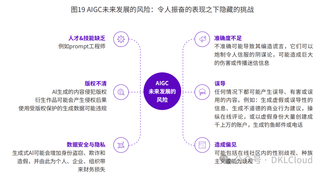 改变社会分配格局:AIGC也可能带来社会、经济和伦理问题。例如,与每一次技术革命相似,AIGC带来的效率提升会消灭大量传统岗位,但AIGC自身和其推动的产业发展过程也会产生很多新的生产和服务需求,进而形成新的专业导向,并在市场的作用下产生新的分配模式。