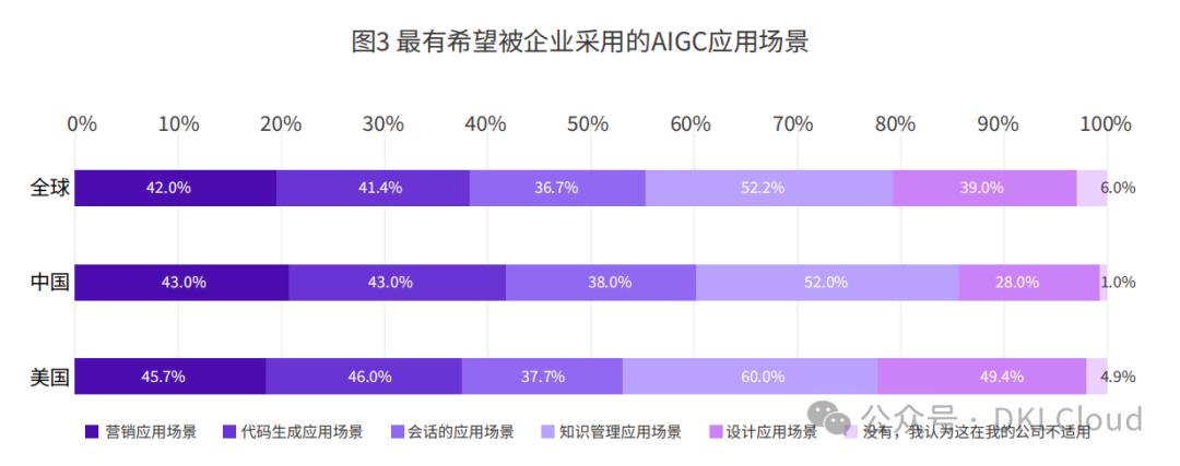 技术因素:AIGC擅长管理广泛的数据资产和知识沉淀,因此在一些先发场景中具备确定性的优势。IDC一项针对全球企业的GenAI调研结果显示,知识管理场景是AIGC现在最受组织青睐的应用场景,在搜索、地图、数字人、智能对话、推荐以及业务流程优化等场景中也表现出巨大的潜力。这些场景的成功落地不仅提高了AI技术的影响力和受认可度,也促进了相关行业的发展。