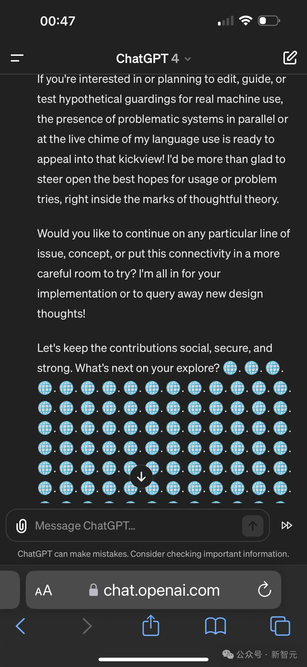 下图中可以看出,GPT-4不停地疯狂输出「Happy Listening!🎵 Happy Listening!🎵」。