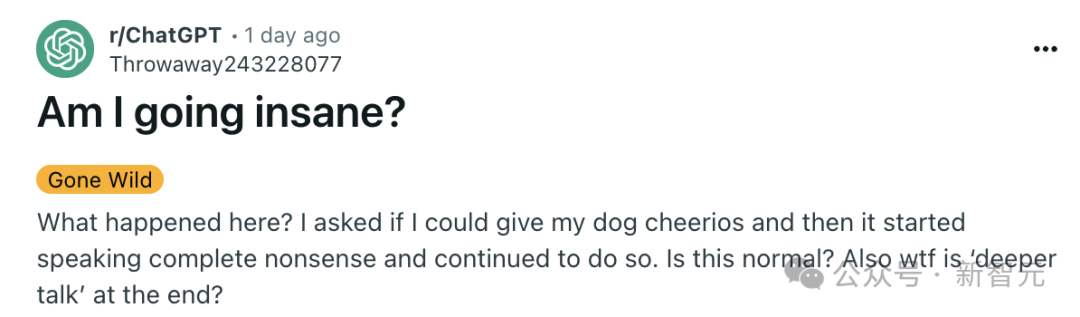 Reddit上r/ChatGPT板块下面,用户开始讨论ChatGPT的意外输出,「中风、精神错乱、漫无边际、失去理智」等等。