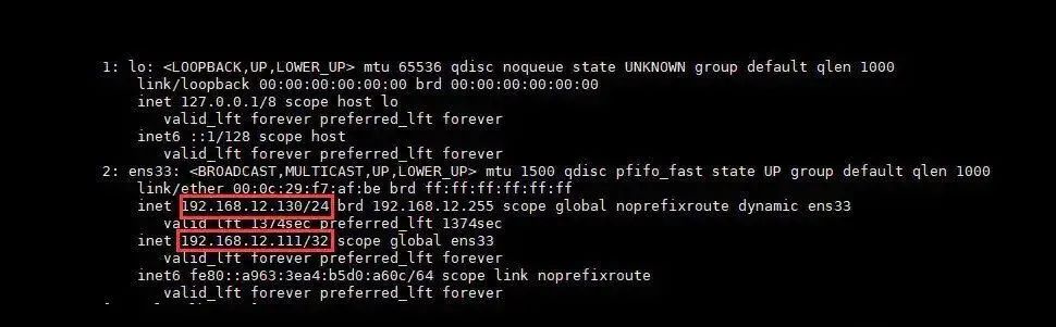 ⑩最后测试一下VIP是否生效,通过查看本机是否成功挂载虚拟IP: