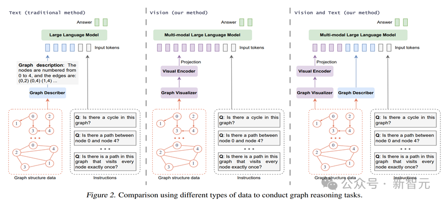 为了回答这些问题,来自香港科技大学和南方科技大学的研究团队构建了首个包含视觉图的推理问答数据集GITQA,并在GPT-4 turbo,GPT-4V等开源模型和Vicuna,LLaVA等闭源模型上进行了广泛的实验,证实了Visual Graph在图推理中的作用,以及其可以和文本模态相互增强。