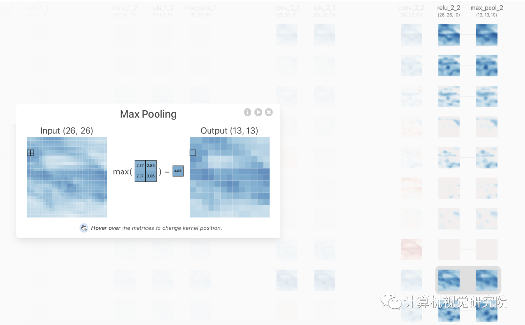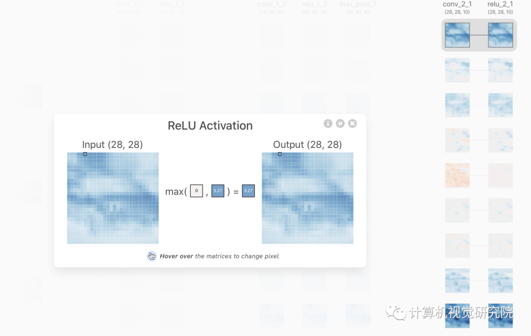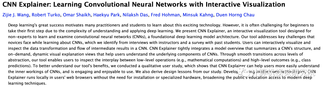 http://ethereon.github.io/netscope/#/editorVisual DL是百度开发的,基于echar和PaddlePaddle,支持PaddlePaddle,PyTorch和MXNet等主流框架。ps:这个是我最喜欢的,毕竟echar的渲染能力不错哈哈哈,可惜不支持caffe和tensorflow。https://github.com/PaddlePaddle/VisualDLhttps://github.com/HarisIqbal88/PlotNeuralNet其实还有很多可视化工具,但是今天我要说的是,训练过程的可视化,与TF的可视化类似,但是这个操作更加简便!这个工具到底把训练过程展示得多么详细?简单来说,项目作者已经给你做好了一个可以交互的界面,你只需要打开浏览器加载出这个界面就可以了。CNN Explainer 使用 TensorFlow.js 加载预训练模型进行可视化效果,交互方面则使用 Svelte 作为框架并使用 D3.js 进行可视化。最终的成品即使对于完全不懂的新手来说,也没有使用门槛。下面我们来看一下具体的效果。