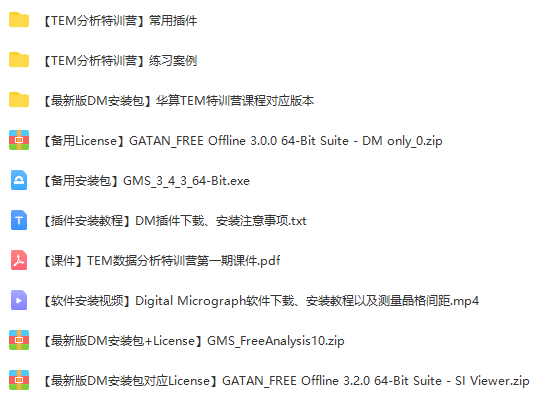 DM简单易学,功能强大,包括TEM电镜图片加标尺、图像上色美化、SAED衍射图案标定、晶面间距量取、衬度调整、EELS谱线分析、样品厚度计算、元素标定、分布mapping、高分辨图像信息挖掘等!