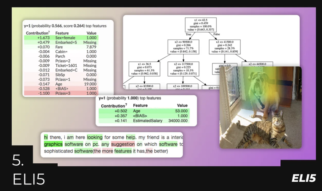 ELI5已经支持了像Scikit-Learn、Keras、XGBoost等许多其他库。你可以针对图像、文本和表格数据的分类调试你的模型。