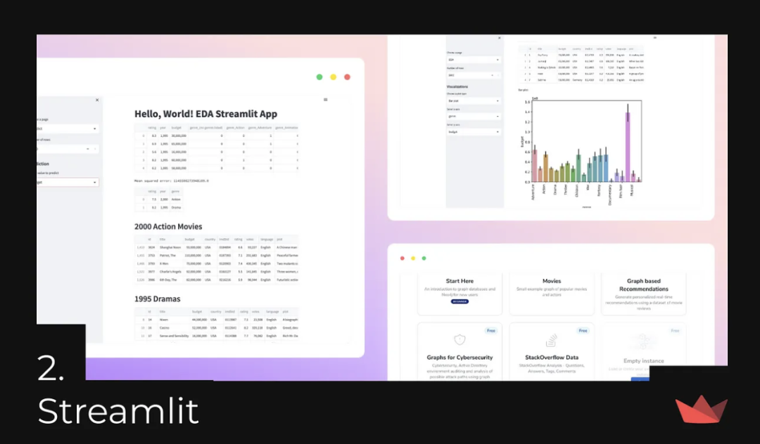 Streamlit是数据科学领域最受欢迎的前端框架。它是一个开源的Python框架,允许用户快速轻松地创建交互式数据应用程序,这对于可能没有广泛网页开发知识的数据科学家和机器学习工程师特别有益。