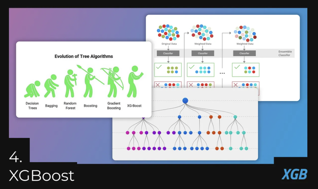 XGBoost是一种强大的机器学习算法,以其准确性、速度和可扩展性而闻名。它基于梯度提升框架,将多个弱学习器组合成一个强学习器。简单来说,你使用多个小模型(如随机森林),将它们组合成一个大模型,最终你会得到一个更快的模型(与例如神经网络相比),同时它是可扩展的,且不太容易过拟合。