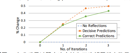 为了调整LLM以产生预测和解释,解释模块必须首先通过二进制反馈和自省尝试生成正确注释的样本。为了展示其效果,作者绘制了每次反思迭代后生成的“决定性”和“正确”预测数目的变化百分比,如下图: