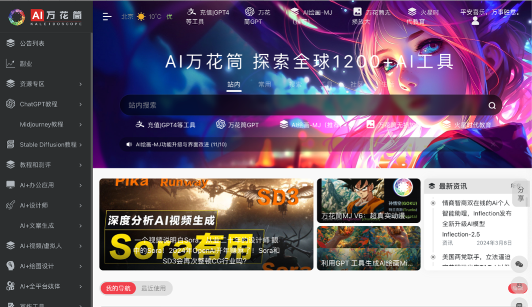 映技派是我第一个使用的AI导航网站,像去年比较火的Vega ai、灵感岛、智能抠图等AI工具都在这个网站里找到学习并使用的,以及最近较火的Sora教程也上线了。